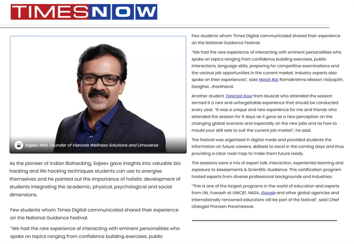 "What Dr. Sajeev Nair shared with me about human longevity and peak performance is backed by real science and has incredible depth.."