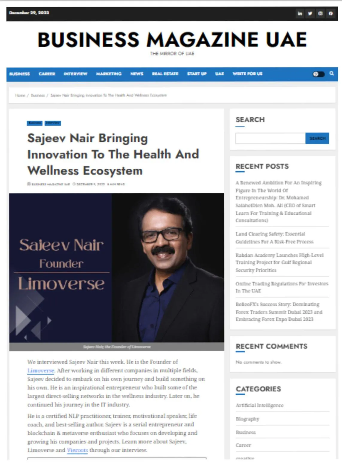 Dr. Sajeev Nair has authored five best-selling books, including: ‘Tathaastu’: A transformative guide to taking charge of your brain and mind to create the life you desire. ‘The Making of A Superhuman’: A comprehensive handbook on biohacking techniques to lead a healthier, happier, and more productive life.